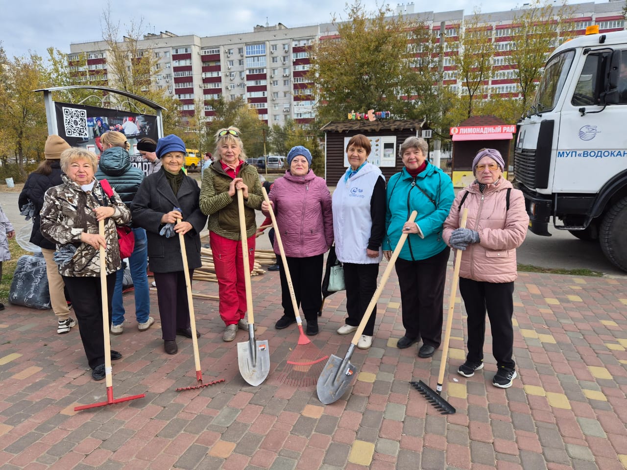 18 октября «Добро.Центр» г. Волжского при РОО «Школа социальной активности» Волгоградской области руководитель, депутат Волжской городской Думы Вера Лазарева вместе со своими «серебряными" волонтёрами в рамках дня единых действий приняли участие в субботнике, который проводился в городском парке «Новый город».
