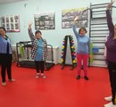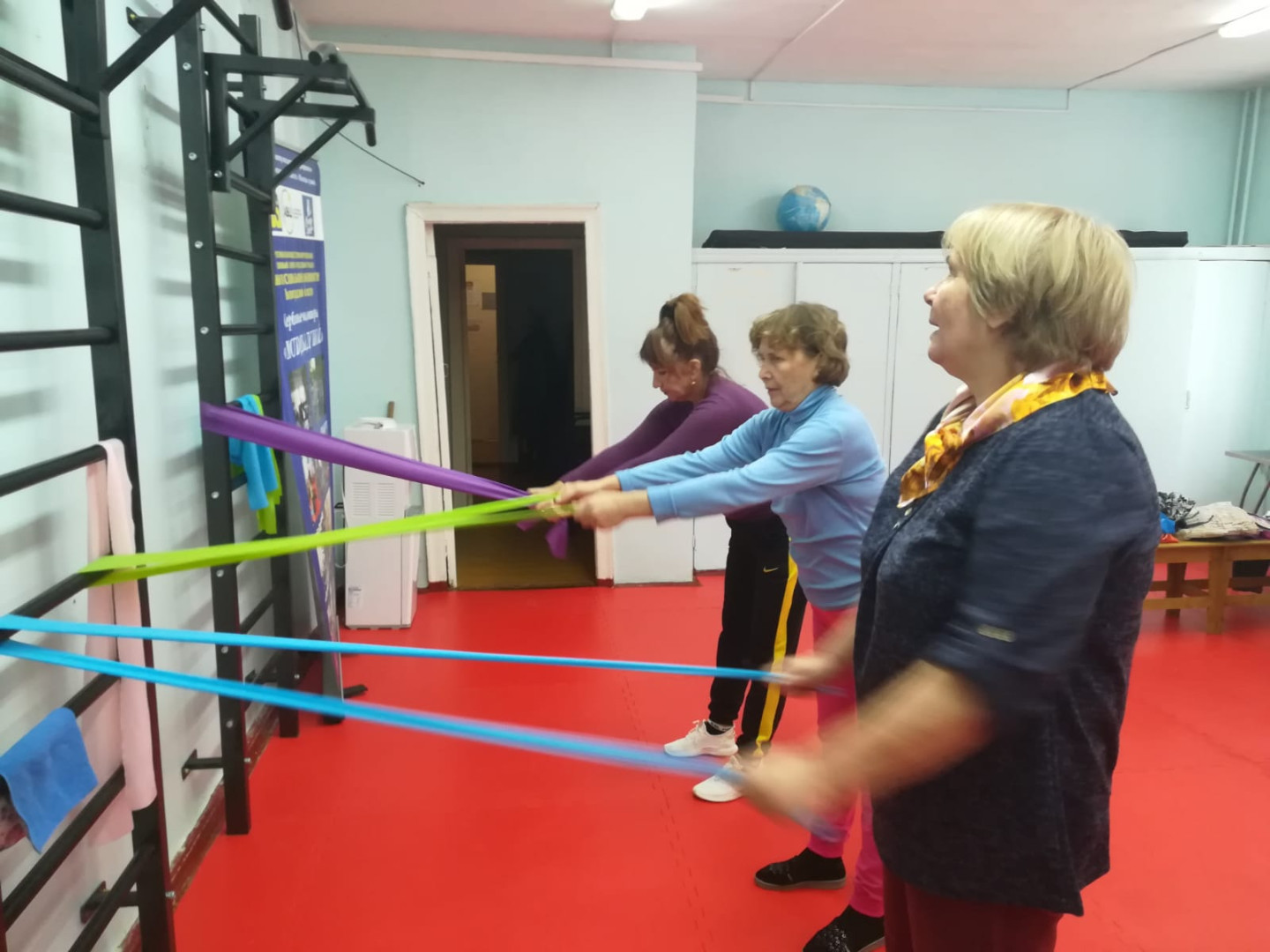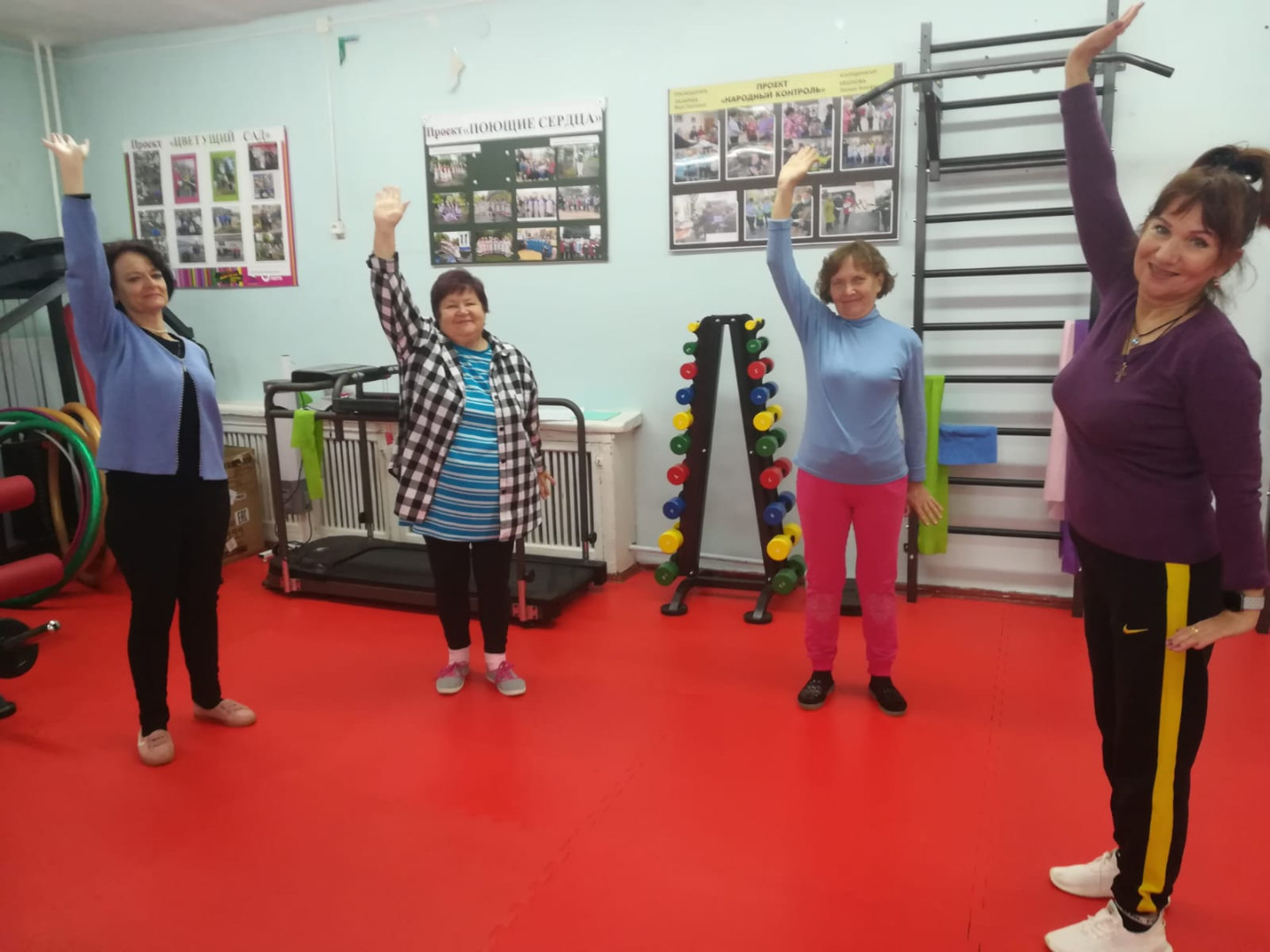 Посетители торопятся на очередные занятия в тренажерном зале, где под руководством опытного инструктора волонтера Валентины Сазоновой укрепляют тело и дух. Шум тренажеров смешивается с бодрыми возгласами и приободряющими словами.
