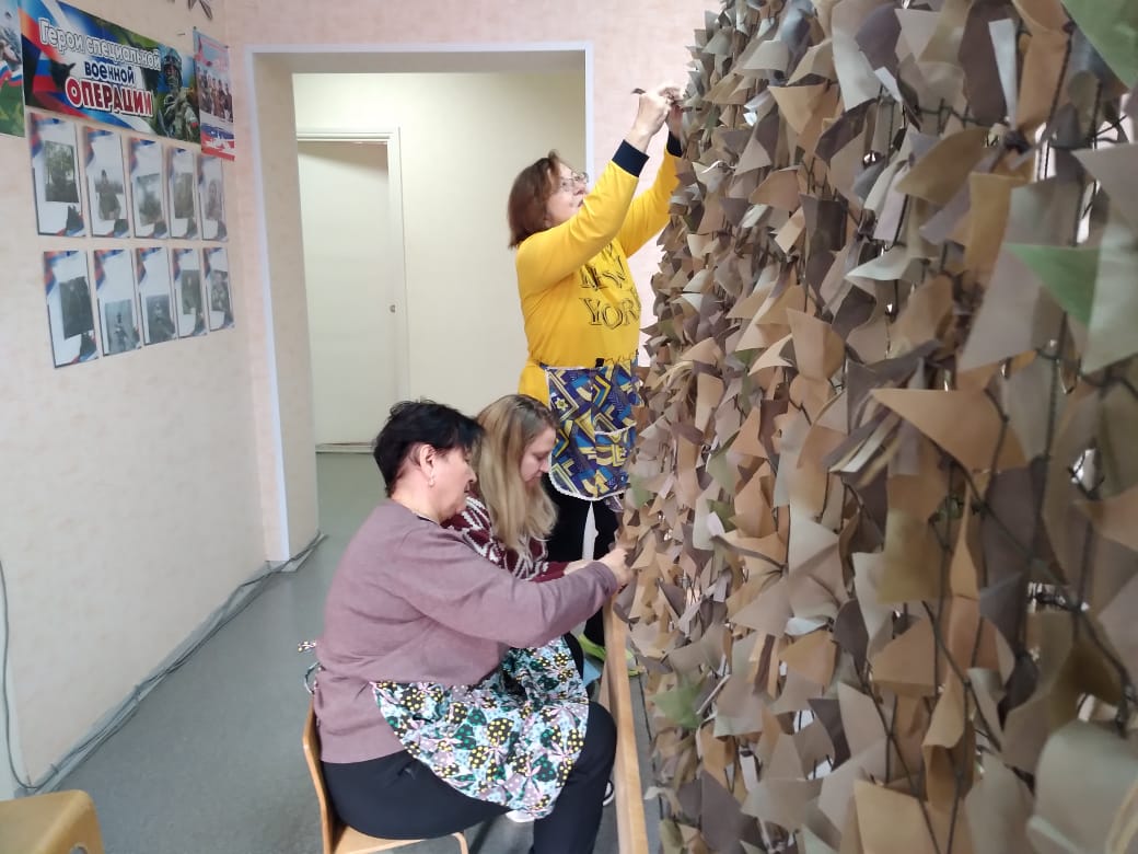 Продолжает свою работу клуб «Волонтер» — главная гордость центра. Здесь собираются неравнодушные люди, готовые посвятить свое время и энергию помощи другим. Одно из самых важных направлений деятельности сегодня – это изготовление маскировочных сетей для СВО. Волонтеры Надежда Иванова, Александра Федорова, Галина Люшня, Тамара Бешнова и другие умелые мастерицы, кропотливо плетут сети, вкладывая в каждый узелок свою заботу и поддержку нашим бойцам. Это тихий, но очень важный труд, приближающий победу.